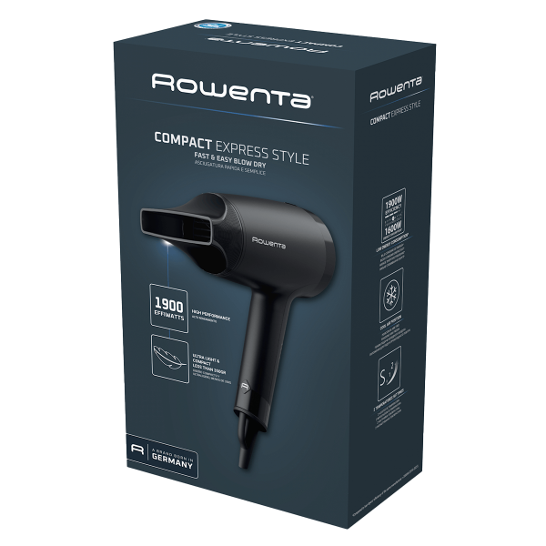 Θέλεις τέλειο styling σε χρόνο μηδέν; Τότε η σειρά Express Style της ROWENTA είναι ιδανική για εσένα. Σχεδιασμένο για γρήγορο και εύκολο στέγνωμα, το ROWENTA CV1801 Express Style προσφέρει αμέτρητες δυνατότητες για κάθε τύπο μαλλιών και κάθε στυλ, προσαρμοσμένο στη δική σου διάθεση. Με ισχυρή ροή αέρα, τεχνολογία Effiwatt για μειωμένη κατανάλωση ενέργειας, και λειτουργία κρύου αέρα για σταθεροποίηση του χτενίσματος, εξασφαλίζει επαγγελματικά αποτελέσματα με άνεση και ευκολία, ενώ διαθέτει 2 ρυθμίσεις ταχύτητας/θερμοκρασίας, εργονομικό σχεδιασμό, κομψό μέγεθος για εύκολο χειρισμό και αποθήκευση, καθώς και γάντζο ανάρτησης για επιπλέον πρακτικότητα.