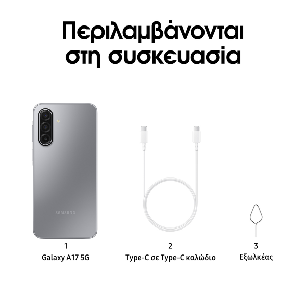 Το SAMSUNG Galaxy A17 5G φέρνει ισορροπία ανάμεσα σε στυλ, απόδοση και αντοχή, προσφέροντάς σου όλα όσα χρειάζεσαι σε ένα Smartphone. Με την εντυπωσιακή Super AMOLED οθόνη 6,7 ιντσών στα 90Hz, απολαμβάνεις ζωντανά χρώματα και ομαλή εμπειρία θέασης, ενώ η τριπλή κάμερα 50MP με OIS σου χαρίζει φωτεινές και ευκρινείς λήψεις, ακόμη και τη νύχτα. Ο οκταπύρηνος επεξεργαστής Exynos 1330 στα 5nm, σε συνδυασμό με το 5G δίκτυο, εξασφαλίζουν υψηλή ταχύτητα, σταθερότητα και άνετο multitasking, ενώ η μπαταρία 5.000mAh σου δίνει την ελευθερία να απολαμβάνεις τη μέρα σου χωρίς περιορισμούς. Προσθέτοντας την αντοχή IP54, το Corning Gorilla Glass Victus, το One UI 7 με 6 χρόνια αναβαθμίσεις και την ενσωματωμένη προστασία Samsung Knox Vault, έχεις στα χέρια σου ένα Smartphone που είναι φτιαγμένο για να σε συνοδεύει με ασφάλεια, κομψότητα και δύναμη στο παρόν…αλλά και στο μέλλον.