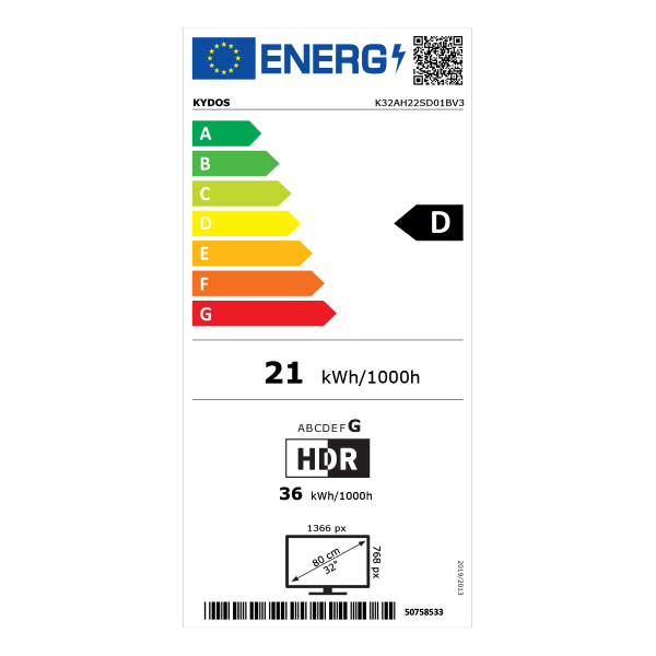 Με ανάλυση HD (1366 x 768), η KYDOS K32AH22S αποδίδει μοναδική λεπτομέρεια και καθαρότητα.