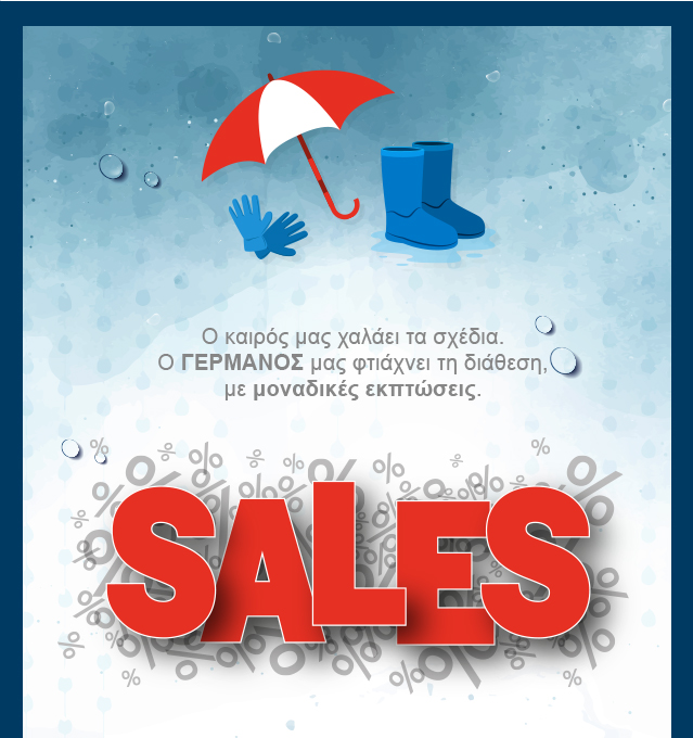 H ΓΕΡΜΑΝΟΣ Α.Β.Ε.Ε. δεν δεσμεύεται για τυχόν τεχνικά ή τυπογραφικά λάθη στην ιστοσελίδα της www.germanos.gr και στο παρόν newsletter, που δε μπορούν να προβλεφθούν καθώς έχουν προκύψει ακούσια ή/και λόγω διακοπών λειτουργίας της ιστοσελίδας εκ λόγων ανωτέρας βίας και για τα οποία θα ενημερώσει εκ νέου αμέσως μόλις αυτό καταστεί εφικτό.