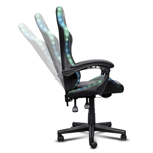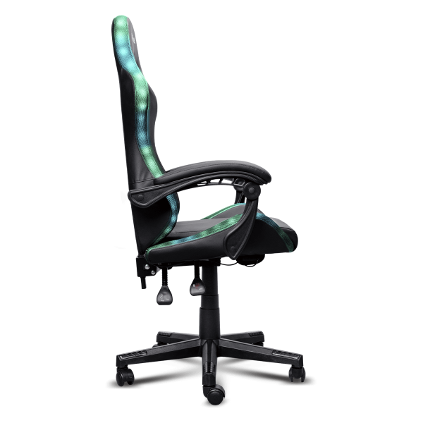 Αναβάθμισε τον χώρο σου με την TRUST RGB GXT704 Roniq gaming καρέκλα. Ολοκληρωμένος RGB φωτισμός στα άκρα προσφέρει 178 χρώματα και εφέ, όλα εύκολα ρυθμιζόμενα μέσω του περιλαμβανόμενου τηλεχειριστηρίου, ενώ μια ενσωματωμένη πλαϊνή τσέπη σου επιτρέπει να αποθηκεύεις το powerbank* και το τηλεχειριστήριο. Παίξε με στυλ και κράτα τον χώρο σου τακτοποιημένο!