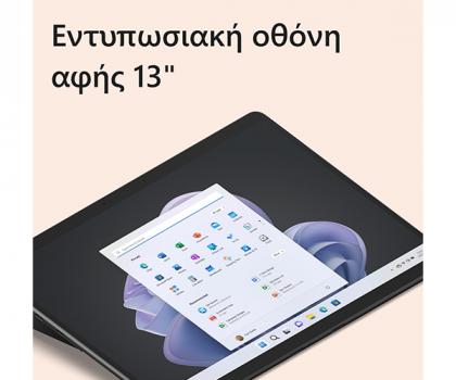 Το MICROSOFT Surface Pro 9 με οθόνη αφής PixelSense Flow 13 ιντσών ανάλυσης 2880x1920 θα σε εντυπωσιάσει με τα ζωντανά και πλούσια χρώματά της, την έντονη φωτεινότητα και την εξαιρετική αντίθεσή της με υποστήριξη Dolby Vision IQ. Παρακολούθηση ταινίας ή τηλεοπτικής σειράς, gaming, σχεδίαση, δημιουργία παρουσίασης ή εργασίας, τα πάντα αναδεικνύονται με ρυθμό ανανέωσης έως 120Hz για να βιώσεις ομαλή εικόνα ακόμα και σε σκηνές με έντονη δράση ή στο γρήγορο σκρολάρισμα. Επιπλέον, ενσωματώνει οπίσθια κάμερα 10MP, καθώς και εμπρόσθια κάμερα 5MP ανάλυσης Full HD με 2 μικρόφωνα Studio που απομονώνουν τους εξωτερικούς θορύβους, για βέλτιστη επικοινωνία στις βιντεοκλήσεις σου και προηγμένη ασφάλεια στο ξεκλείδωμα της συσκευής μέσω Windows Hello. Τέλος, τα 2 στερεοφωνικά ηχεία προσφέρουν μία εμπειρία ακρόασης δίχως προηγούμενο, με υποστήριξη Dolby Atmos για να νιώσεις ότι ο ήχος έρχεται από παντού!