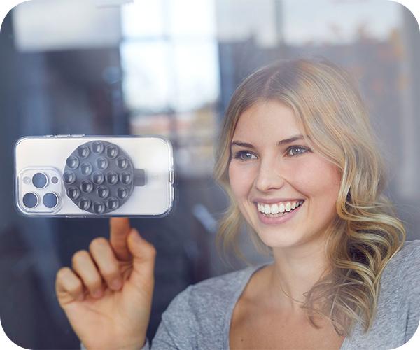 Η ειδική τεχνολογία αναρρόφησης εξασφαλίζει απόλυτη σταθερότητα σε οποιαδήποτε επιφάνεια. H βάση στήριξης CELLULAR LINE για Smartphone συνιστάται να χρησιμοποιείται σε λείες θήκες και να τοποθετείται σε καθαρές, λείες και επίπεδες επιφάνειες. Απλώς τοποθέτησέ την, ρύθμισε τη γωνία που επιθυμείς και απόλαυσε την τέλεια λήψη! Μπορεί να αφαιρεθεί εύκολα χάρη στην ειδική λαβή της.