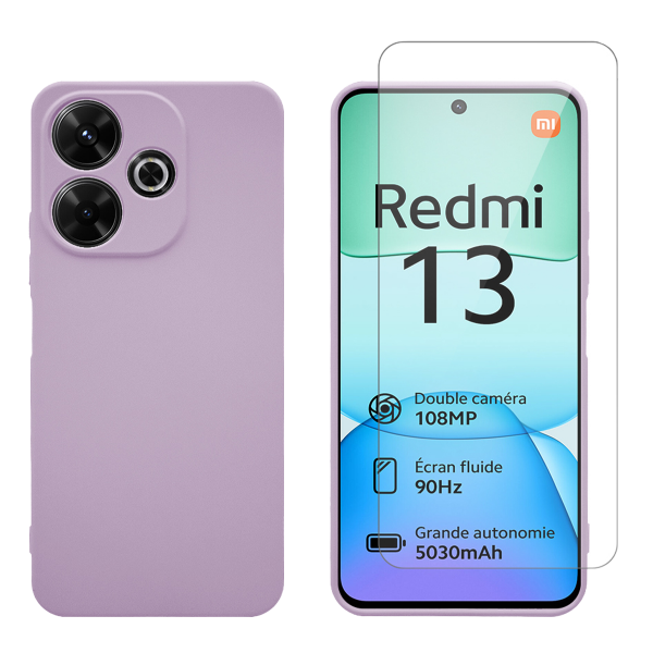 Θήκη Σιλικόνης + Γυαλί Προστασίας Οθόνης COSY για XIAOMI Redmi 13 4G Purple
