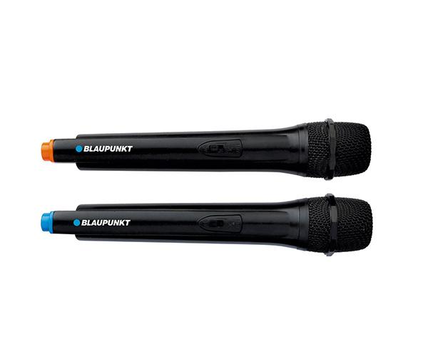 Εκφράσου με το καραόκε και τα δύο ασύρματα μικρόφωνα που συνοδεύουν το Bluetooth ηχείο Blaupunkt PartyBox PB12DB. Η λειτουργία καραόκε προσφέρει προτεραιότητα μικροφώνου, ρύθμιση ηχούς και ελέγχους πρίμων και μπάσων, για να προσαρμόσεις τον ήχο στις προτιμήσεις σου. Επιπλέον, μπορείς να συνδέσεις ενσύρματα μικρόφωνα ή ακόμη και μια κιθάρα για αυθεντικές μουσικές στιγμές.