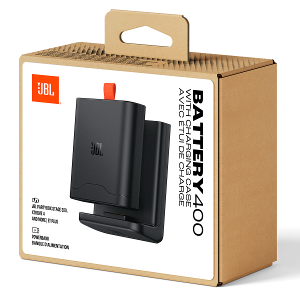 Η επαναφορτιζόμενη μπαταρία JBL 400 είναι η επαναφορτιζόμενη μπαταρία λιθίου-ιόντων, σχεδιασμένη για τα ηχεία JBL PartyBox Stage 320 και JBL Xtreme 4. Διαθέτει χωρητικότητα 7.2V / 9444mAh / 68Wh και σου προσφέρει έως 18 ώρες συνεχούς μουσικής με μία μόνο φόρτιση, ενώ με δύο μπαταρίες μπορείς να φτάσεις έως 36 ώρες συνολικής αναπαραγωγής. Έχει διαστάσεις 93 x 25,1 x 89,5 mm, βάρος 350 γραμμάρια και λειτουργεί σε θερμοκρασίες από 0 έως 45°C. Υποστηρίζει γρήγορη φόρτιση, που σου δίνει περίπου 2 ώρες επιπλέον μουσικής με μόλις 10 λεπτά φόρτισης, και η συσκευασία της είναι FSC πιστοποιημένη και φιλική στο περιβάλλον.
