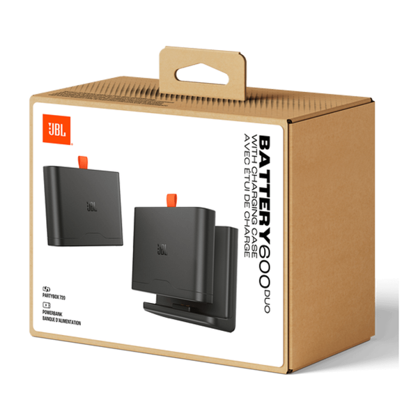 Η επαναφορτιζόμενη μπαταρία JBL 600 Duo είναι η επαναφορτιζόμενη μπαταρία λιθίου-ιόντων, σχεδιασμένη για τα ηχεία JBL PartyBox 520 και JBL Boombox 4. Διαθέτει χωρητικότητα 21.6V / 4584mAh / 99.02Wh και σου προσφέρει έως 16 ώρες συνεχούς μουσικής με μία μόνο φόρτιση. Η θήκη φόρτισης επιτρέπει την ταυτόχρονη φόρτιση δύο μπαταριών και την αντικατάστασή τους με νέες, χωρίς να σταματήσει η μουσική. Επίσης, η θήκη λειτουργεί ως powerbank, επιτρέποντάς σου να φορτίζεις άλλες συσκευές μέσω της θύρας USB-C.