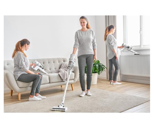 Η SENCOR 7522WH SVC επαναφορτιζόμενη σκούπα είναι μια εξαιρετική επιλογή αφού κάνει πλέον το καθάρισμα του σπιτιού μια ευχάριστη διαδικασία. Το υψηλής ποιότητας πέλμα της λειτουργεί μοναδικά σε όλες τις επιφάνειες, δάπεδα και χαλιά, χωρίς να τις τραυματίζει.