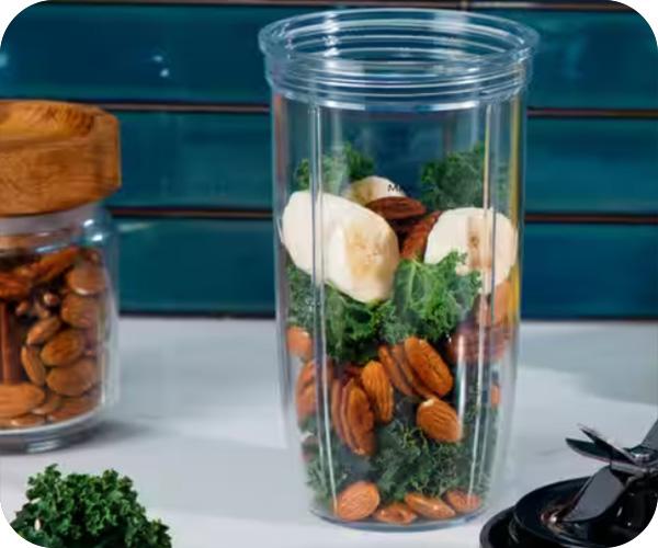 Το Nutribullet Series 1200, περιλαμβάνει δύο κύπελλα χωρητικότητας900ml & 700ml, για να καλύψει κάθε σου ανάγκη. Χρησιμοποίησε το μεγαλύτερο κύπελλο (900ml) για πλούσια smoothies ή μεγαλύτερες ποσότητες και το μικρότερο (700ml) για πιο compact και γρήγορες δημιουργίες καθημερινά.