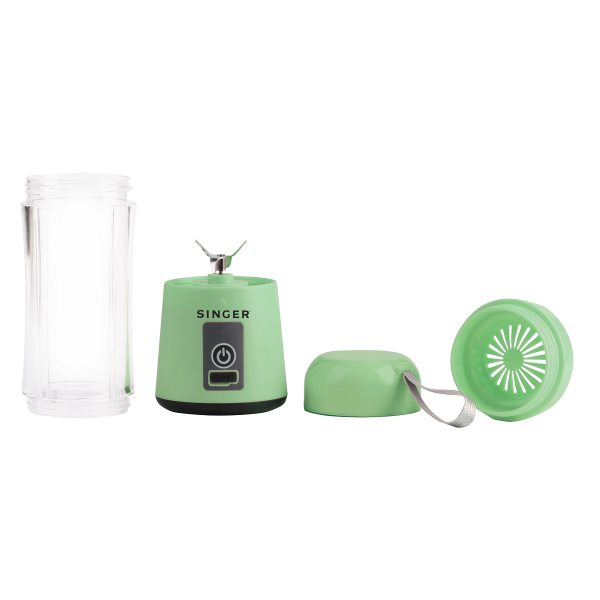 Ανακάλυψε τον μαγικό κόσμο των απολαυστικών γεύσεων με το επαναφορτιζόμενο, φορητό μπλέντερ της Singer! Αυτό το εκπληκτικό εργαλείο, χωριτηκότητας 380ml, αλλάζει τις καθημερινές σου συνήθειες, προσφέροντας φρεσκοστυμμένους χυμούς, smoothies, κρύο τσάι, milkshakes και δροσερά cocktails, όλα με το πάτημα ενός κουμπιού.