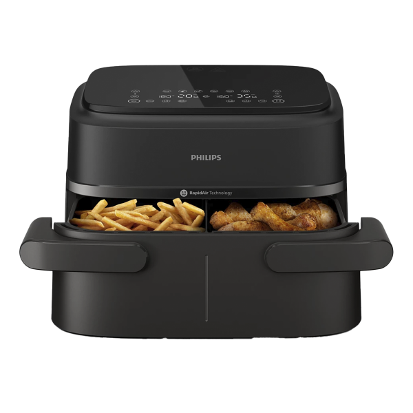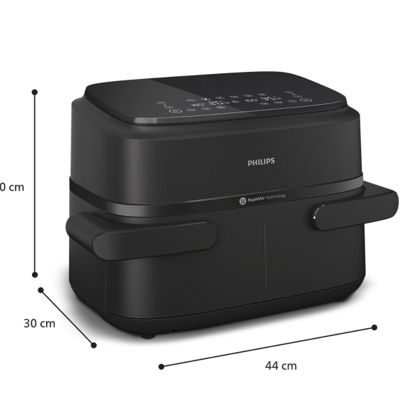 Πρόκειται για το πιο compact Airfryer με διπλό καλάθι, που εξοικονομεί έως και 40% περισσότερο χώρο στον πάγκο της κουζίνας, χωρίς να θυσιάζει την απόδοση ή τη χωρητικότητα. Είναι ιδανικό για μικρές κουζίνες, διαμερίσματα ή για όσους θέλουν μέγιστη αποδοτικότητα σε περιορισμένο χώρο.