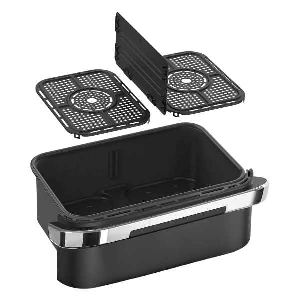 Η ROHNSON R-28019 Dual, σου δίνει τη δυνατότητα να ετοιμάσεις δύο διαφορετικά φαγητά ταυτόχρονα, χάρη στον διαχωρισμό του κάδου σε δύο ξεχωριστούς θαλάμους των 4.5 λίτρων. Έτσι, θα μπορείς να μαγειρέψεις για παράδειγμα πατάτες και κοτόπουλο ταυτόχρονα, χωρίς αναμονή και χωρίς ανάμειξη γεύσεων. Εναλλακτικά, θα μπορείς να εκμεταλλευτείς τον ενιαίο κάδο των 9 λίτρων για μεγαλύτερες ποσότητες ή για εκείνα τα μεγάλα φαγητά που θα μαγείρευες συνήθως στον φούρνο, όπως ένα ολόκληρο κοτόπουλο ή μεγάλη μερίδα λαχανικών.