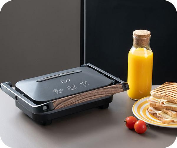 Η soft touch λαβή με wooden finishing που διαθέτει η IZZY IZ-2013 σαντουιτσιέρα panini συνδυάζει λειτουργικότητα, ασφάλεια αλλά και στιλ. Λειτουργικότητα γιατί το soft touch υλικό προσφέρει απαλή αίσθηση στο χέρι σου και αποτρέπει το γλίστρημα κατά τη χρήση. Ασφάλεια γιατί χρησιμοποιώντας την αντιθερμική λαβή, μπορείς να αφαιρέσεις αμέσως μετά το ψήσιμο, το φαγητό σου, χωρίς κίνδυνο εγκαύματος ή ανεπιθύμητων ατυχημάτων. Τέλος το wooden finishing με την νότα του φυσικού ξύλου στην εμφάνιση της συσκευής, προσφέρει έναν μοντέρνο, ζεστό και φινετσάτο χαρακτήρα στην κουζίνα σου.