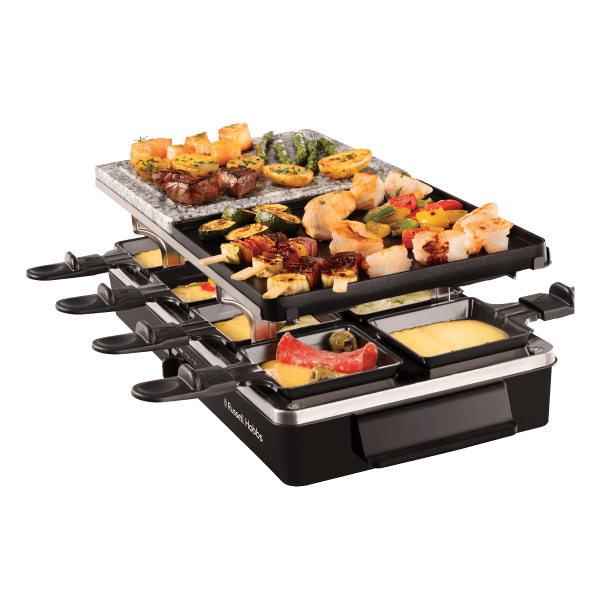 Ανακάλυψε τον πιο απολαυστικό τρόπο να μοιράζεσαι το φαγητό με την RUSSELL HOBBS Raclette 3 in 1, την ιδανική ηλεκτρική ψησταριά για παρέες και οικογενειακά τραπέζια! Με λειτουργία 3 σε 1 που περιλαμβάνει διπλές πλάκες ψησίματος και mini τηγάνια, σου προσφέρει τη δυνατότητα να ετοιμάζεις ταυτόχρονα διαφορετικά φαγητά, από λιωμένα τυριά και λαχανικά μέχρι κρέατα και γλυκίσματα. Ταυτόχρονα, με ισχύς 1400W, η συσκευή εξασφαλίζει γρήγορη και ομοιόμορφη θέρμανση, ενώ ο σχεδιασμός της επιτρέπει τη χρήση από έως και 8 άτομα ιδανική επιλογή για φιλικές συγκεντρώσεις και δείπνα στο σπίτι.
