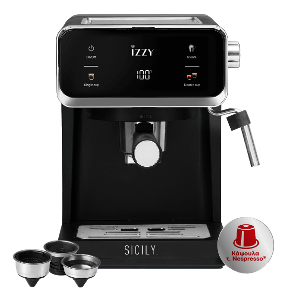 Η IZZY ΙΖ-6017 Sicily, είναι σχεδιασμένη για να καλύψει κάθε γούστο στην παρασκευή καφέ. Με 3 φίλτρα καφέ, σου δίνει τη δυνατότητα να επιλέξεις ανάμεσα σε μονή ή διπλή δόση αλεσμένου καφέ, αλλά και σε κάψουλες τύπου Nespresso, προσφέροντας σου έτσι ευελιξία αλλά και ευκολία στην καθημερινότητά σου.