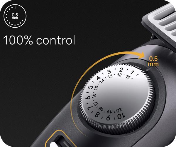 Με 40 ρυθμίσεις μήκους κοπής από 0,5mm έως 20mm, αυτή η κουρευτική μηχανή σου παρέχει την δυνατότητα να προσαρμόσεις το μήκος των τριχών σύμφωνα με τις ανάγκες σου. Σε συνδυασμό με το σύστημα ProLock για ασφαλή επιλογή χωρίς λάθη, με την κουρευτική μηχανή της Braun έχεις τον πλήρη έλεγχο στο styling σου.