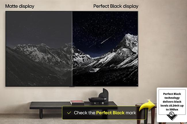 Ζήσε το Perfect Black με πιστοποίηση UL που προσφέρει πραγματικό μαύρο ακόμα και σε φωτεινούς ή σκοτεινούς χώρους. Απόλαυσε έντονη αντίθεση και αυξημένη φωτεινότητα, ανεξάρτητα από τις συνθήκες φωτισμού.