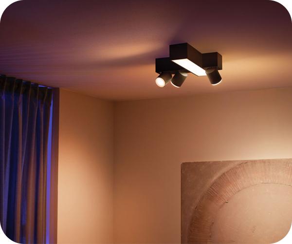 Το Hue White and Color Ambiance Centris Cross της Philips είναι ένα έξυπνο φωτιστικό οροφής που συνδυάζει λειτουργικότητα και αισθητική. Το κεντρικό του φωτιστικό συνοδεύεται από τέσσερα ευέλικτα σποτ, τα οποία μπορούν να προσανατολιστούν ανεξάρτητα, δίνοντάς σου τη δυνατότητα να αναδείξεις κάθε γωνιά του δωματίου. Από θερμό έως ψυχρό λευκό φως ή και πολύχρωμες αποχρώσεις, το Hue White and Color Ambiance Centris της Philips σου επιτρέπει να προσαρμόσεις το φωτισμό ακριβώς όπως το θες με το πάτημα ενός κουμπιού, προσφέροντας μια ζωντανή και εντυπωσιακή ατμόσφαιρα στο χώρο σου.