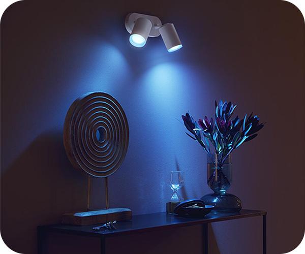 Με το διπλό σποτ PHILIPS Hue White and Color Ambiance Fugato, δημιουργείς το ιδανικό σκηνικό για το σαλόνι ή την κρεβατοκάμαρά σου. Αυτό το εξαιρετικά προηγμένο φωτιστικό προσφέρει οποιοδήποτε τόνο του λευκού, από ζεστό και φωτεινό έως δροσερό και ατμοσφαιρικό, ενώ παράλληλα παρέχει περισσότερα από 16 εκατομμύρια χρώματα για να δημιουργήσεις την τέλεια ατμόσφαιρα στον χώρο σου. Επιπλέον, με τη χρήση του Bluetooth, έχεις άμεσο έλεγχο του φωτισμού, με το άγγιγμα ενός μόνο κουμπιού στο κινητό σου. Αλλά για να απολαύσεις το πλήρες φάσμα των δυνατοτήτων, σύνδεσέ το Hue Fugato με μια γέφυρα Hue Bridge για προηγμένη λειτουργικότητα και προσαρμοσμένο έλεγχο μέσω της εφαρμογής Hue.