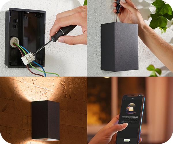 Σύνδεσε το PHILIPS Hue white & color ambiance επιτοίχιο φωτιστικό εξωτερικών χώρων rasonate με το Philips Hue Bridge (πωλείται ξεχωριστά) και ανακάλυψε τις ατελείωτες δυνατότητες που μπορεί να σου προσφέρει. Αρχικά, μπορείς να ελέγξεις τα φώτα σου από το Smartphone ή το Tablet σου με την εφαρμογή Philips Hue σε iOS και Android συσκευές. Έτσι μπορείς να ελέγχεις τα φώτα του σπιτιού από απόσταση, όπου και αν βρίσκεσαι για να μην έχεις κανένα άγχος.