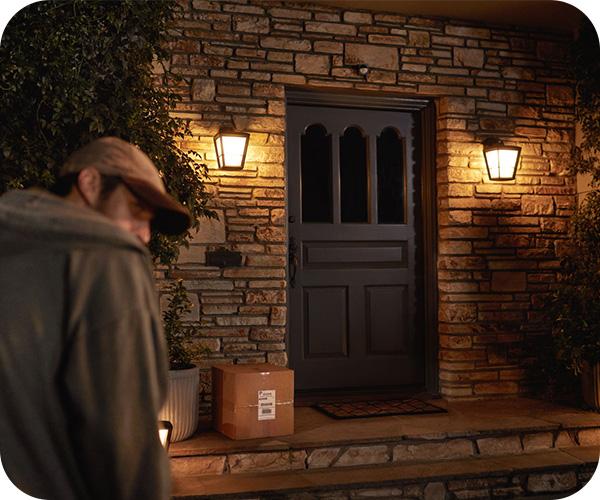 Χάρη στη μεγάλη οπτική γωνία και την εμβέλεια ανίχνευσης, ο PHILIPS Hue αισθητήρας εξωτερικών χώρων θα εντοπίσει οποιαδήποτε κίνηση κοντά στο σπίτι σου. Μπορεί να ενεργοποιήσει αυτόματα τα φώτα εξωτερικού χώρου και να φωτίσει τους απρόσκλητους επισκέπτες. Μπορείς να ρυθμίσεις τα φώτα εσωτερικού χώρου ώστε να ανάβουν και να δίνουν την εντύπωση ότι είσαι στο σπίτι, ακόμη και όταν δεν είσαι.