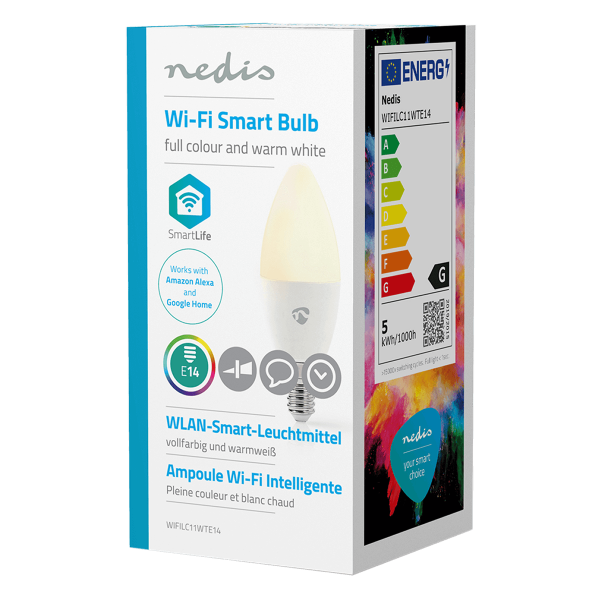 Ο NEDIS έξυπνος λαμπτήρας LED E14 Candle Wi-Fi RGB βάζει χρώμα στη ζωή σου! Καταρχάς, συνδέεται ασύρματα στο δίκτυό σου μέσω Wi-Fi και με την πολύτιμη βοήθεια της συνοδευτικής εφαρμογής Nedis SmartLife (διαθέσιμη σε iOS και Android) σου δίνει τη δυνατότητα απομακρυσμένης διαχείρισης, για παράδειγμα από το Smartphone ή το Tablet σου, από τη ρύθμιση της φωτεινότητας έως και τον προγραμματισμό της λειτουργίας της (ενεργοποίηση και απενεργοποίηση, με χρονοκαθυστέρηση ή χωρίς). Επιπρόσθετα, υποστηρίζει φωνητικό έλεγχο μέσω Amazon Alexa και Google Home, για να σου λύσει πλήρως τα χέρια!