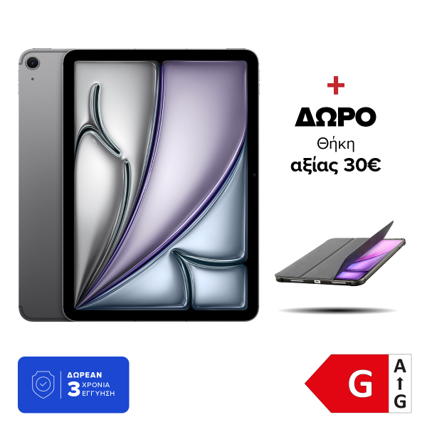 Το iPad Air 11 ιντσών είναι εξοπλισμένο με την υπερδύναμη του εξαιρετικά γρήγορου M3 chip της Apple.1 Διαθέτει μια εκπληκτική οθόνη Liquid Retina, μπροστινή κάμερα 12MP Center Stage για ακόμα καλύτερες βιντεοκλήσεις, και ταχύτατο Wi-Fi 6E3 και 5G.4 Επιπλέον, συνδυάζεται με το Apple Pencil Pro, το Magic Keyboard και το Smart Folio για να εκτελείς πολλαπλές διεργασίες, να μελετάς, να εργάζεσαι, να παίζεις και να δημιουργείς όπου κι αν βρίσκεσαι.