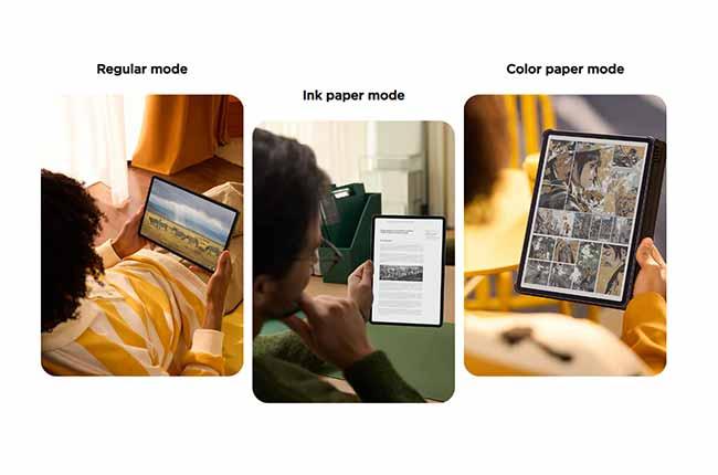 Με το καινοτόμο VersaView έχεις τρεις εμπειρίες θέασης σε μία συσκευή. Το Ink Paper mode προσφέρει εφέ e-ink ιδανικά για πολύωρο διάβασμα βιβλίων και άρθρων. Το Color Paper mode με ζεστούς χρωματικούς τόνους είναι τέλειο για περιοδικά ή graphic novels, ενώ το Regular mode χαρίζει πλήρη χρωματική απεικόνιση για σερφάρισμα και streaming. Ό,τι κι αν κάνεις, η άνεση στα μάτια σου είναι πάντα εξασφαλισμένη.