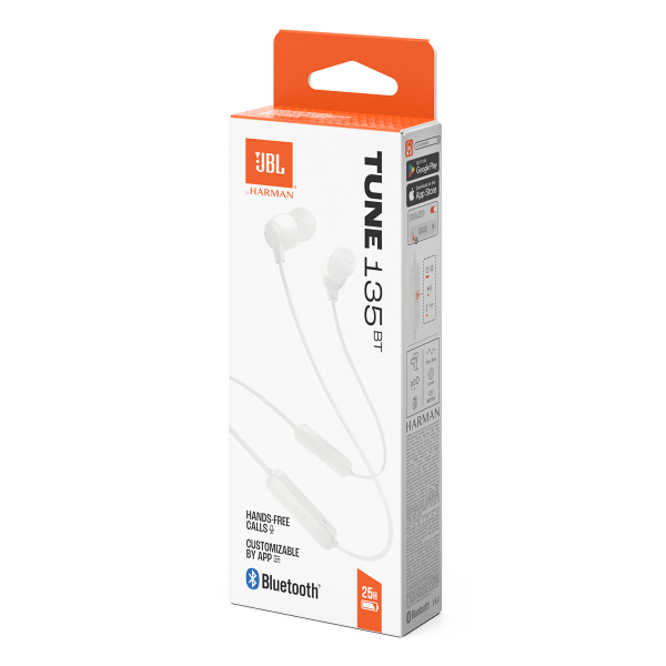 Τα Bluetooth ακουστικά neckband JBL Tune 135BT είναι ασύρματα in-ear ακουστικά με τον χαρακτηριστικό ήχο JBL Pure Bass και οδηγούς 8,6 mm. Προσφέρουν έως 25 ώρες αναπαραγωγής με δυνατότητα Speed Charge. Διαθέτουν Bluetooth νεότερης γενιάς με multi-point σύνδεση και Google Fast Pair. Έχουν ενσωματωμένο μικρόφωνο και χειριστήρια για μουσική, κλήσεις και φωνητικούς βοηθούς. Ο εργονομικός σχεδιασμός με επίπεδο καλώδιο εξασφαλίζει άνεση στη χρήση. Παρέχουν αντοχή σε πιτσιλίσματα και ελαφριά βροχή (IPX4). Η ελαφριά και φορητή κατασκευή τους τα καθιστά εύκολα στη μεταφορά.