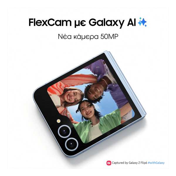 Με τη νέα επαγγελματική κάμερα 50MP με ευρυγώνιο φακό και το πανίσχυρο Galaxy AI του SAMSUNG Galaxy Z Flip6 θα τραβήξεις πορτρέτα με φυσική θόλωση του φόντου όπως με μία DSLR και εκπληκτικές selfies με την FlexCam. Επίσης, με το Αυτόματο Ζουμ θα έχεις πάντα την καλύτερη γωνία λήψης (εύκολη ρύθμιση και χειροκίνητα), ενώ με οπτικό ζουμ 2x θα απολαύσεις καθαρές φωτογραφίες ακόμα και από μεγάλη απόσταση. Τώρα, θα μοιραστείς μοναδικά βίντεο στα social media (βελτιστοποιημένα για το Instagram), με μείωση «θορύβου» και υψηλή αντίθεση HDR για μαγικές νυχτερινές λήψεις, ενώ η πρακτική λαβή χαρίζει ομαλότητα σε εγγραφές που κρατάς το Smartphone σου με ένα χέρι!