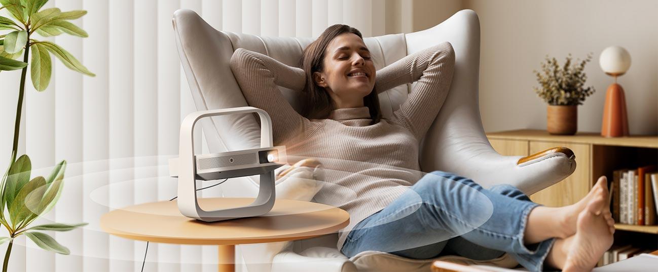 Ο επόμενός σου προβολέας μπορεί να είναι κομψός σαν κορνίζα, συμπαγής αλλά πανίσχυρος. Με την ενσωματωμένη βάση που ρυθμίζεται έως 150°, μπορείς να προβάλλεις οπουδήποτε και σε οποιαδήποτε γωνία με απόλυτη ευκολία. Ρύθμισε τη γωνία προβολής αβίαστα και απόλαυσε την τέλεια εμπειρία θέασης, όπου κι αν βρίσκεσαι.