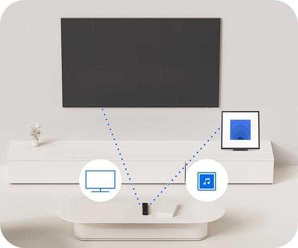 Με τη λειτουργία Art Panel (πωλείται ξεχωριστιά), μπορείς να προσαρμόσεις το SAMSUNG Music Frame HW-LS60D στο δικό σου στιλ, δημιουργώντας μια ευχάριστη ατμόσφαιρα που αντικατοπτρίζει την προσωπικότητά σου. Όσον αφορά το One Remote Control, το τηλεχειριστήριο της τηλεόρασης Samsung δεν είναι περιορισμένο μόνο στην τηλεόραση αλλά μπορεί επίσης να χρησιμοποιηθεί για να ελέγξεις βασικές λειτουργίες του Music Frame, όπως η ενεργοποίηση, η ρύθμιση της έντασης και η επιλογή ηχητικών εφέ, για απόλυτη εμπειρία χρήσης.