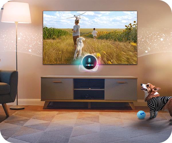 Μέσω της λειτουργίας Pet Care και το ενσωματωμένο μικρόφωνο, η SAMSUNG QN90F 4K τηλεόραση εντοπίζει ήχους όπως το γάβγισμα και, αυτόματα, προβάλλει το αγαπημένο περιεχόμενο του κατοικιδίου σου για να το ηρεμήσει και να του προσφέρει άνεση.