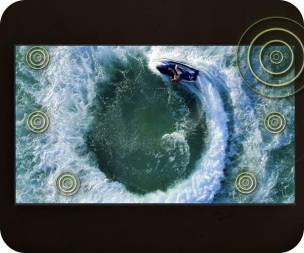 Νιώσε την ένταση του ήχου να κινείται γύρω σου. Με ηχεία 4.2.2.ch, η τεχνολογία Object Tracking Sound+ φέρνει την ηχητική εμπειρία ένα βήμα πιο κοντά στην πραγματικότητα, εκεί που κάθε ήχος ακολουθεί τη δράση στην οθόνη σου.