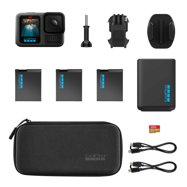 Το απόλυτο πακέτο GoPro HERO 13 Black extendnded power bundle σου δίνει ό,τι χρειάζεσαι για να απογειώσεις τη δημιουργικότητά σου. Η κάμερα HERO13 προσφέρει επαγγελματική ποιότητα εικόνας και σταθεροποίηση, ενώ ο Dual Battery Charger με τις 3 Enduro Batteries σου εξασφαλίζει ασταμάτητη ενέργεια και ταυτόχρονη φόρτιση. Με τη Curved Adhesive Mount στερεώνεις την κάμερα σε κάθε καμπύλη επιφάνεια, ενώ η 64GB SanDisk microSD προσφέρει ταχύτητα και αξιοπιστία για κάθε λήψη. Το Thumbscrew και το Mounting Buckle κρατούν τη GoPro σου απόλυτα σταθερή, το USB-C καλώδιο φορτίζει γρήγορα τις συσκευές σου, και η Camera Case κρατά τα πάντα οργανωμένα και έτοιμα για ταξίδι. Ολοκλήρωσε το στυλ σου με τα GoPro stickers και μπες στη δράση με το πιο πλήρες, έτοιμο για περιπέτεια σετ που σχεδιάστηκε ποτέ.
