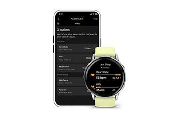 Δες αν οι μετρήσεις της υγείας σου, όπως καρδιακοί παλμοί, HRV, θερμοκρασία δέρματος και Pulse Ox στον ύπνο, αποκλίνουν από το συνηθισμένο σου εύρος, ώστε να εντοπίζεις εγκαίρως πιθανό στρες ή επιβάρυνση στο σώμα.